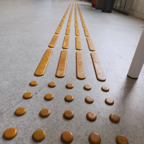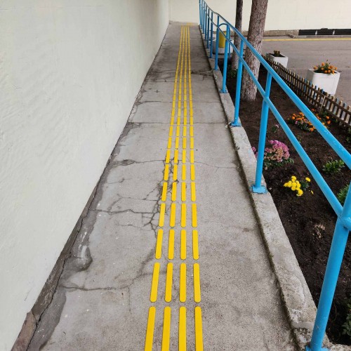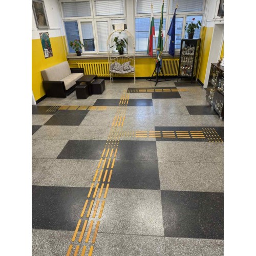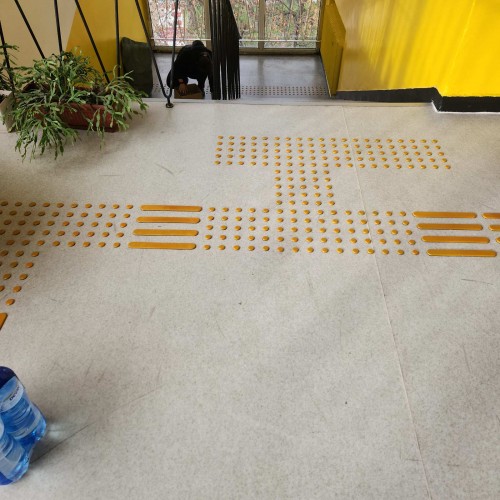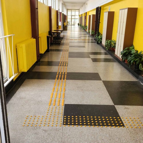 Предимство на отделните бутони: Използването на отделни TPU елементи вместо цели плочи позволява по-лесно почистване на подовата настилка около тях и запазва естетиката на интериора, като същевременно изпълнява всички изисквания за достъпна среда.